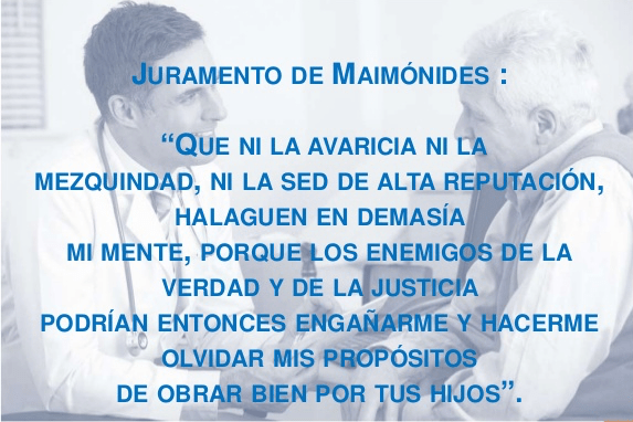 Por eso, una de sus primeras sorpresas fue la exposición de la plegaria de Moses Maimonides, médico judío del siglo XII: “Inspírame un gran amor a mi arte y a tus criaturas. No permitas que la sed de ganancias o que la ambición de renombre y admiración echen a perder mi trabajo, pues son enemigas de la verdad y del amor de la humanidad y pueden desviarme del noble deber de atender al bienestar de tus criaturas”.