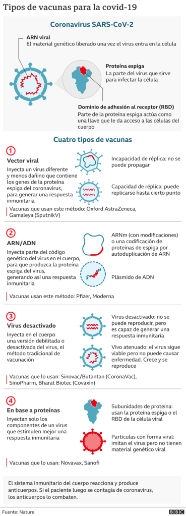 Así tenemos cuatro principales tipos de vacuna según generan la inmunidad frente al COVID (ANEXO):