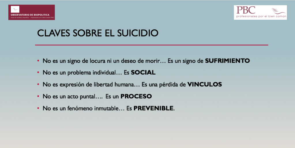 No podemos considerar la muerte por suicidio como una muerte común fruto de una elección personal irreversible. (con frecuencia oímos la frase de que “aquel que quiere suicidarse al final lo consigue”, esto es falso).