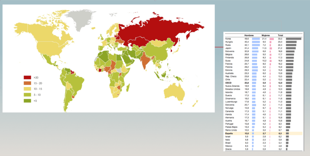 - Por cada una que lo consigue, otras 20 lo intentan, siendo la primera causa de muerte externa en muchos países del mundo y de las primeras causas de muerte en adolescentes y personas en edad productiva.